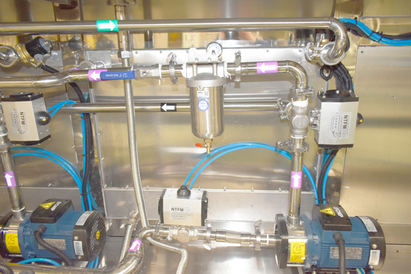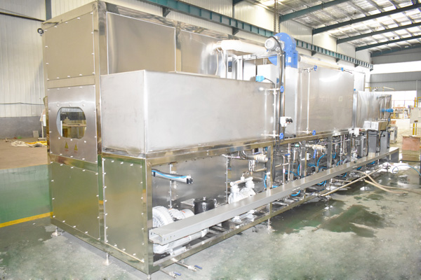 該設備有上料工位、 超聲波清洗工位× 4、 酒精漂洗工位、 風刀切液工位、下料工位、 廢液儲存槽× 2、溶液預加熱槽× 2、 桁架機械手、清洗工裝、 拋動系統、 隔爆溫控水浴加熱系統、 PLC+觸摸屏控制系統、 管路系統及智能電器控制系統設備等組成。該設備清洗效果好、提高了工件的清潔度。該機結構設計及工藝安排合理、自動化程度高、清洗精度高,有效解決了此類工件的清洗難題。